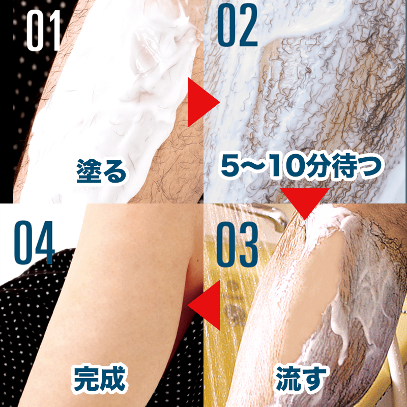 実際に使ってみると、カミソリで剃るよりもめちゃくちゃ簡単にできました。クリームを塗って5~10分間待った後に流すだけ。もしくは、軽くふき取るだけでもOKなんです。予想以上に簡単!!!