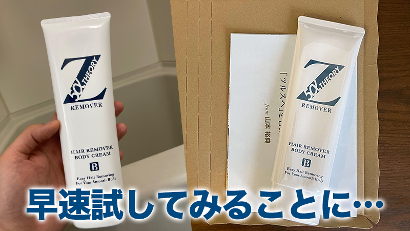 除毛クリームは”女性専用”といったイメージがありましたが、このZリムーバーは主に男性向けに開発がされた除毛剤のようなので、早速ネットで注文して試してみることに。